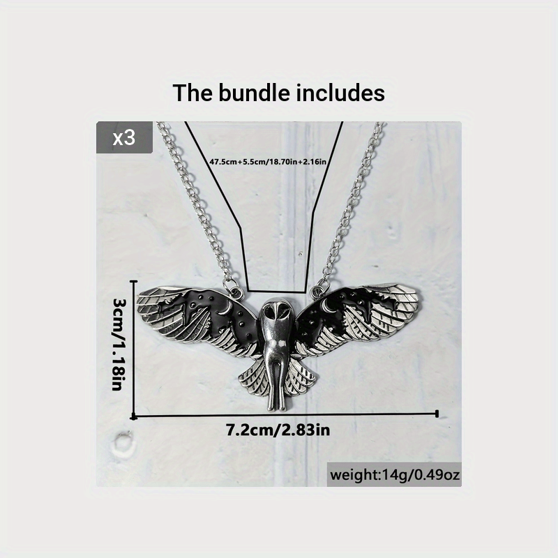 [Silvery Owl Pendant Animal Totem] Vintage Silvery Owl Pendant Necklace Witch Moon Phase Art Necklace Ladies Animal Totem Necklace Jewelry Gift