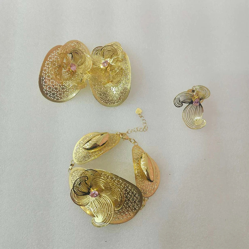 Italy Gold Plated Jewelry Set for Women Dubai Luxury Fashion Design Shiny Necklace Earrings Bangle Ring Wife Girlfriend Gift